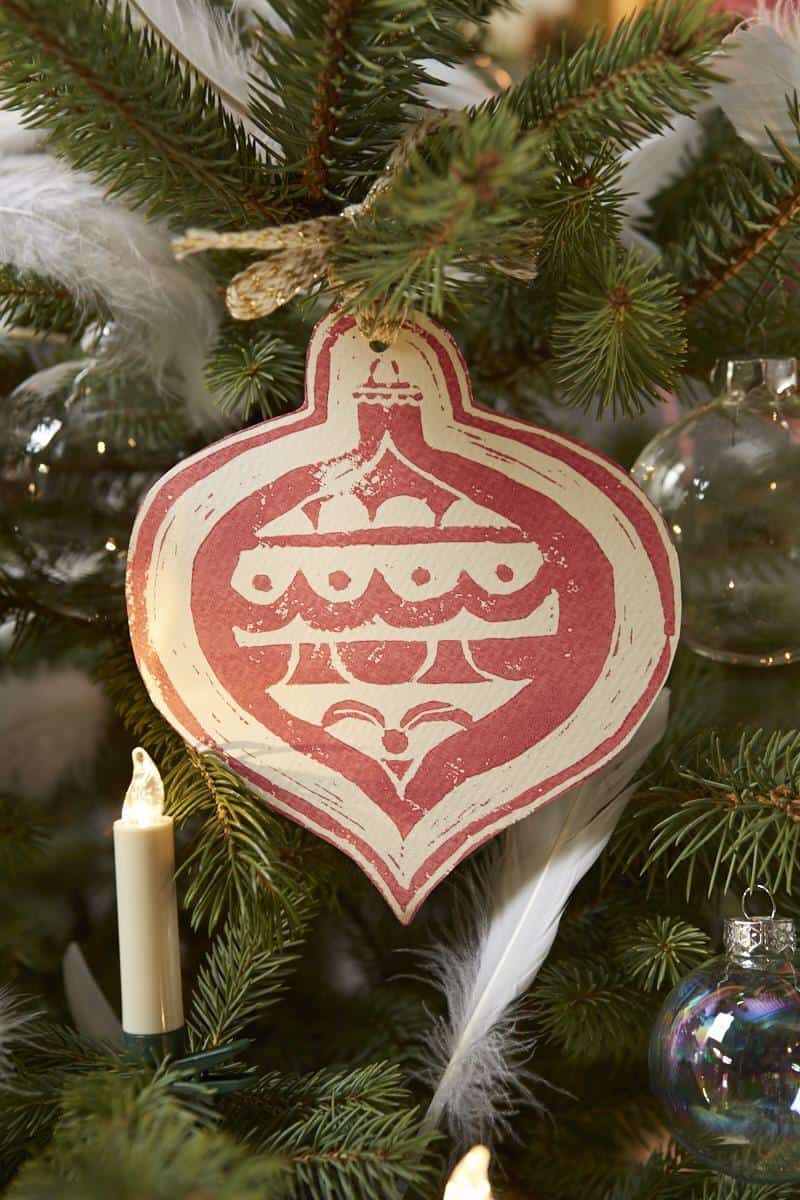 5. Anhänger ausschneiden, mit Aufhänger versehen und in den Baum hängen.