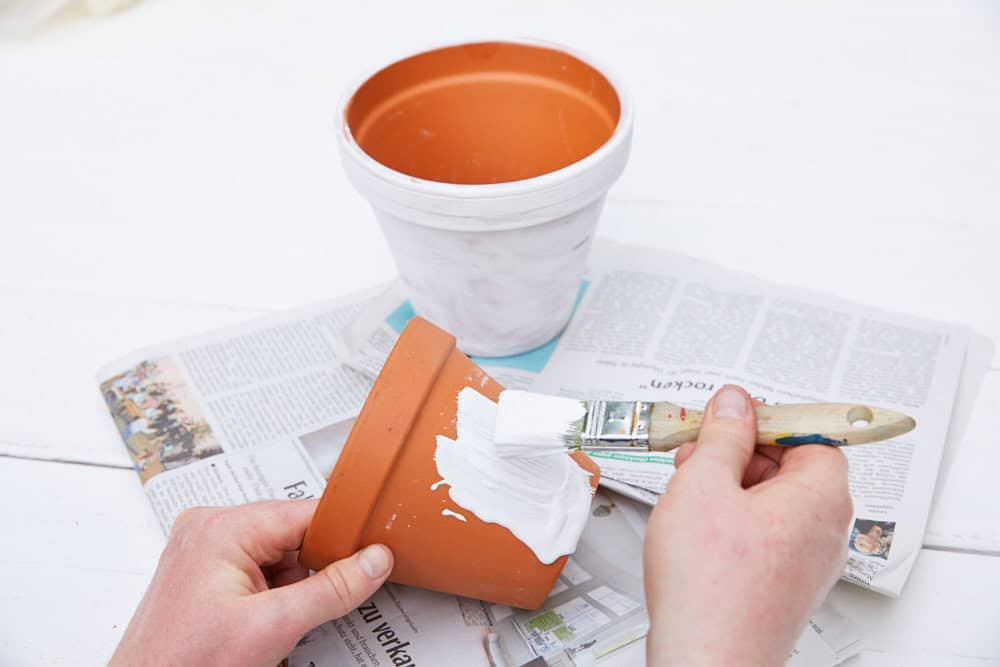 Den Tontopf zunächst kolorieren und gut trocknen lassen. Dann Maulbeerbaumrinde, Schnur, Band und Zierdraht immer wieder um den Topf schlingen, bis dieser in gewünschter Form ummantelt ist. Erde einfüllen und die Pflanze einsetzen.