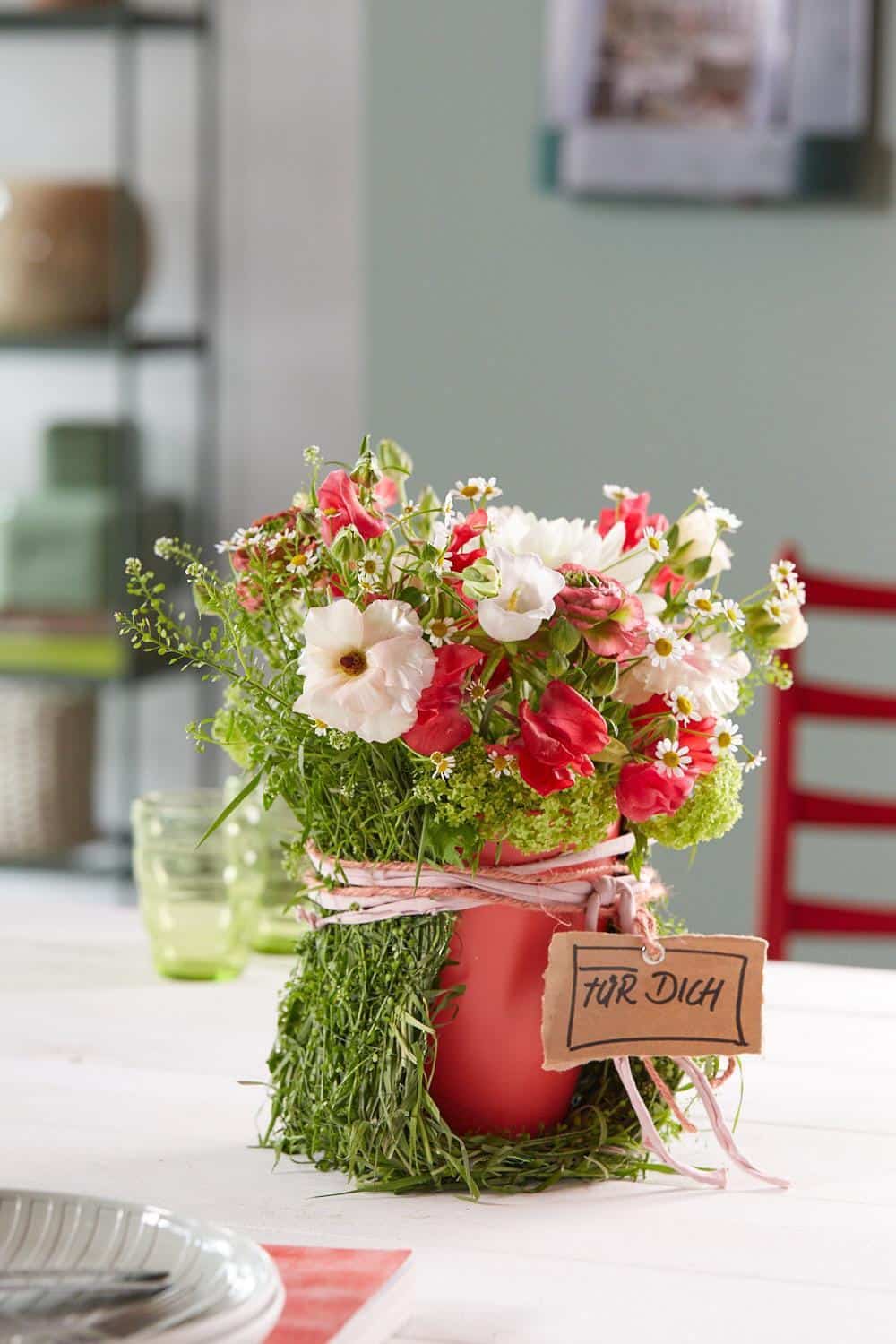 Blumen zum Muttertag sind langweilig? Von wegen – wir zeigen euch in diesem Beitrag zwei Ideen, wie man Blumen zu neuen und kreativen Muttertagsgeschenken verwandelt. Den Mix aus roten Blüten und Gräsern wird euere Mutter sicherlich lieben. Und was gibt es Besseres als selbst gemachte Geschenke, die von Herzen kommen? Beide Ideen lassen sich durch eine kleine Grußbotschaft ganz einfach personalisieren und so könnt ihr eurer Mama mitteilen, wie viel sie euch bedeutet.