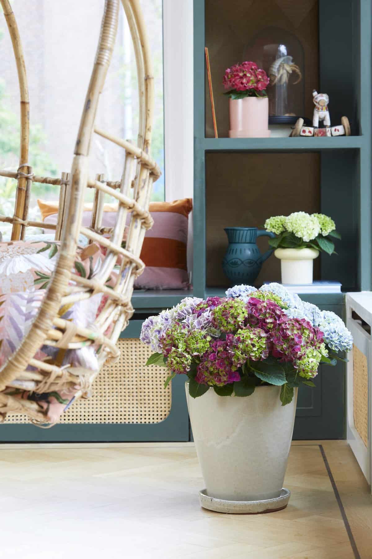 Habt ihr auch schon die zweifarbigen Hortensien entdeckt? Es gibt sie zum Beispiel in Rosa-Weiß oder Blau-Weiß. Aber das Besondere: Die Blütenbälle der Zimmerhortensien verfärben sich generell während der Blütezeit zum Beispiel von Rosa nach Dunkelgrün. Oder von Crème nach Weiß und anschließend zu Hellgrün. Die Blüherin begeistert euch also immer wieder mit einem neuen Anblick.