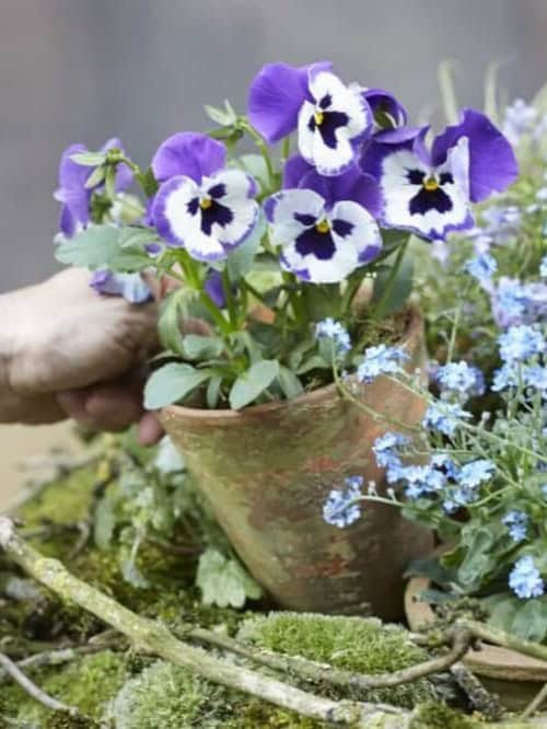 • Frühlingsblüher wie Vergissmeinnicht, Stiefmütterchen und Gundermann