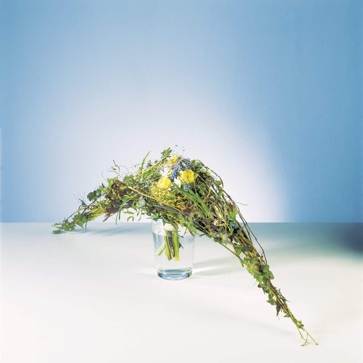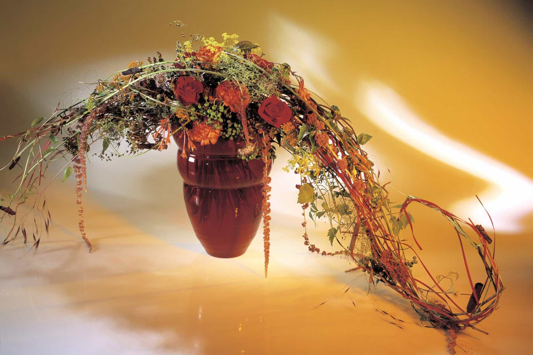 Einige „beschwingte“ florale Beispiele: Cytisus praecox, Amaranthus caudatus, Euphorbia fulgens, Hagebuttenzweige, Xerophyllum asphodeloides, Aspidistra-Blätter, Staudenwicken.