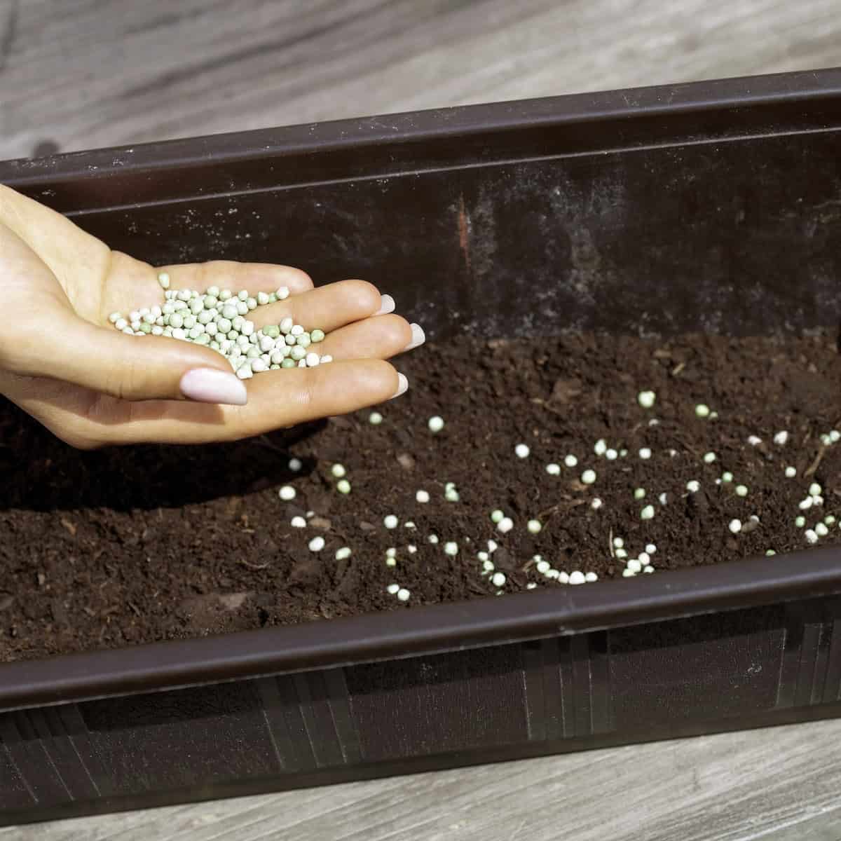 - Die Art (siehe oben) und Formulierung des Düngers, z. B. flüssig, konzentriert, anwendungsfertig aufbereitet, granuliert etc.