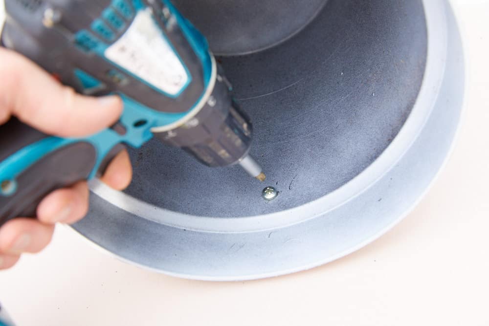 - Dann einen Kunststofftopf auf das Brett schrauben.