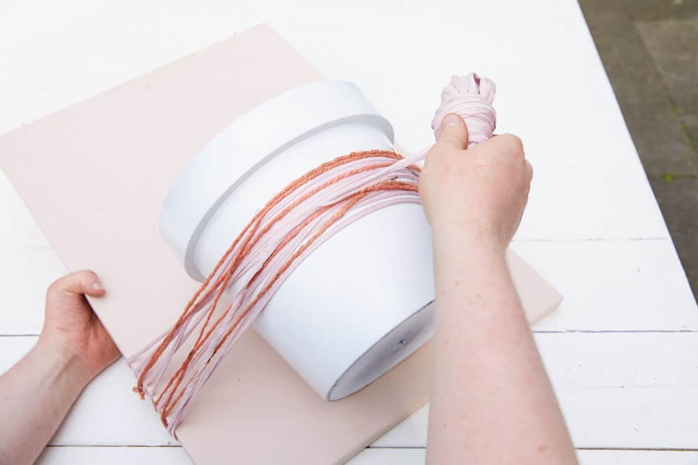 - Anschließend beides zusammen mit Band und Schnur umwickeln.