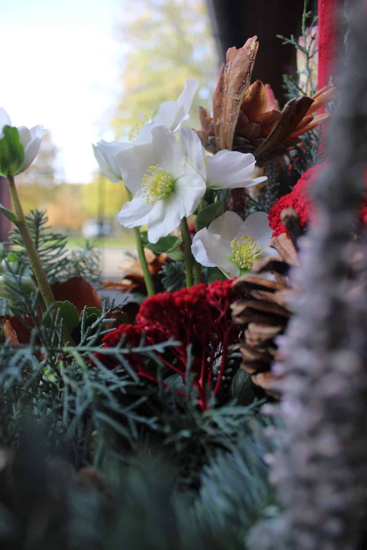 Diese Symbolkraft sollte sich auch in der Grabbepflanzung wiederfinden, versinnbildliche sie doch das ewige Leben. Hierbei gehe es besonders farbharmonisch und formenreich zu: Verschiedene Heidepflanzen in Kombination mit Alpenveilchen, Gräsern, Sedums, Chrysanthemen und Heben werden von Ästen sowie Ranken, die den Kreislauf allen Lebens symbolisiert, geschmückt. „Gerade die blühenden Lenzrosen in der kalten Jahreszeit, wenn der Raureif sich über die Pflanzen legt, ergeben ein schönes Bild“, erklärt die Floristin. Die weiße Blüte füge sich harmonisch ein. Durch eine sensible, aufeinander abgestimmte Bepflanzung entstehe eine ausdrucksvolle Floristik, die eine Wertschätzung und tiefste Verbindungen zu den Verstorbenen veranschaulicht.