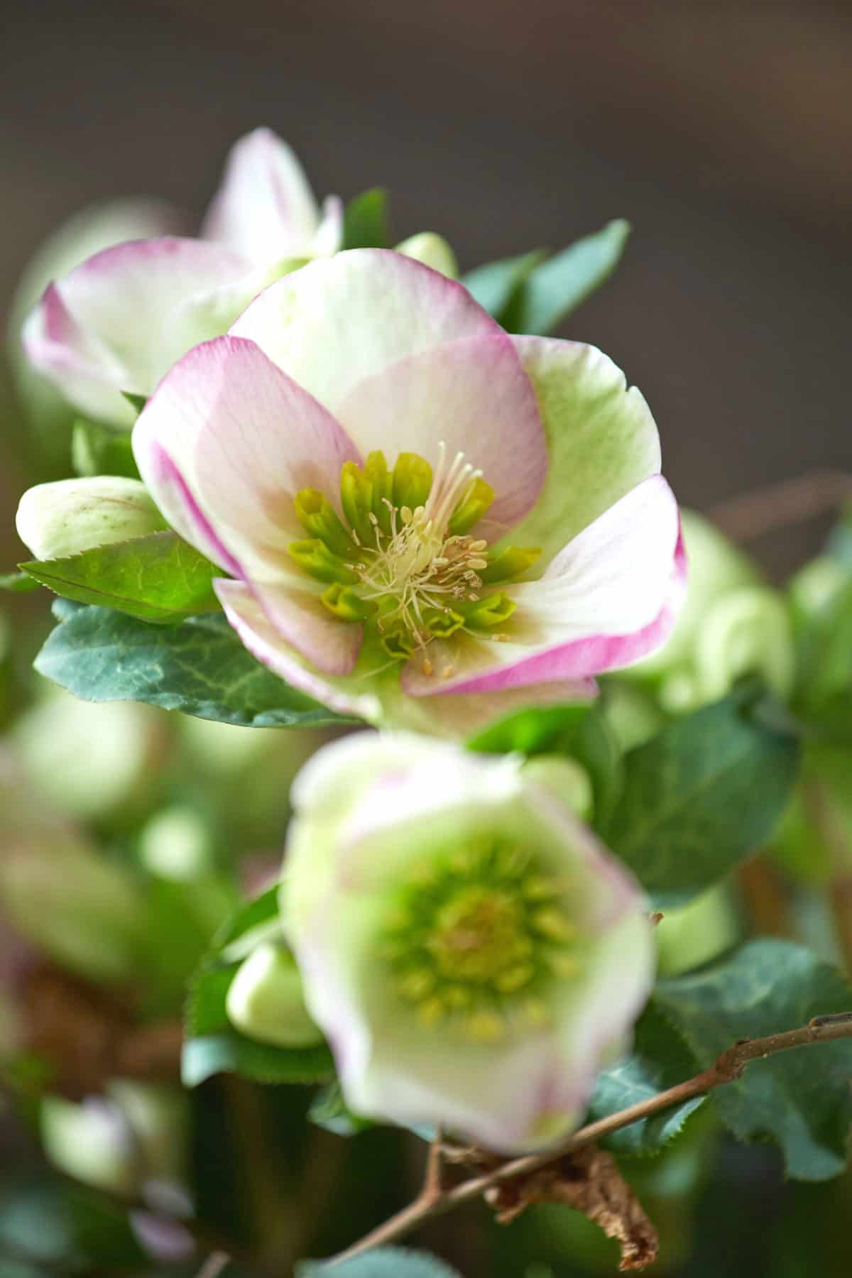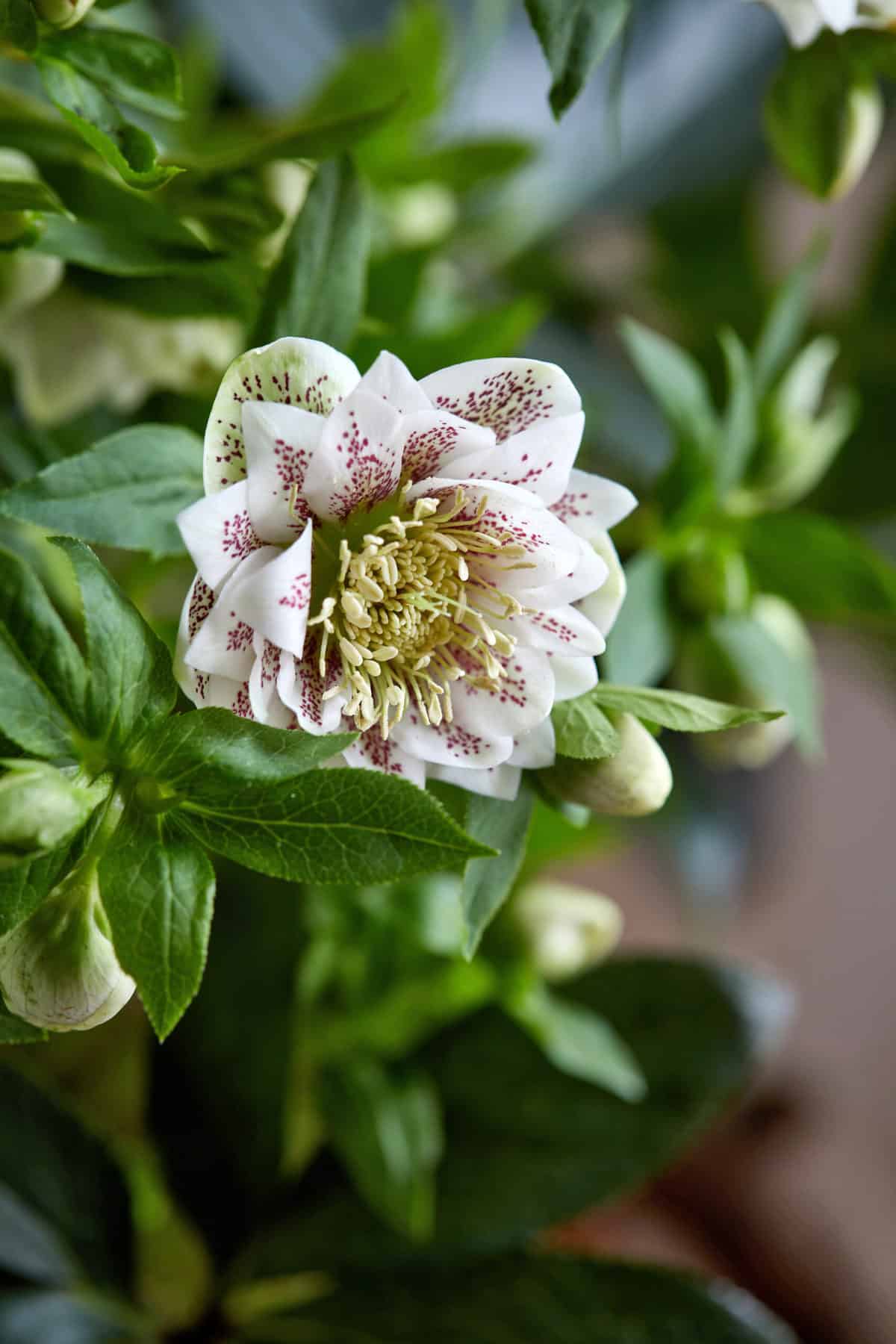 Pflanzliche Werkstoffe: Lenzrose – Helleborus orientalis ‚Glenda’s Gloss‘ (Verboom), Hainbuche – Carpinus betulus