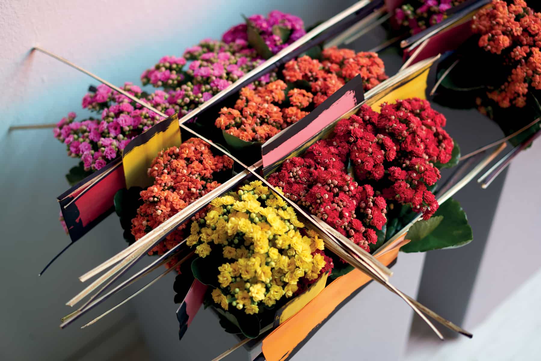 Diese farbenfrohen Sukkulenten sind durch ihr lange und zuverlässige Blüte bekannt. Ein schönes Bild ergeben Kalanchoe in Kombination mit Kakteen und anderen Sukkulenten. Gepflanzt in Glasgefäßen und mit Sand bedeckt, lassen sich stimmungsvolle und pflegeleichte Arrangements kreieren. Es gibt eine Vielzahl an Sorten, welche uns mit ihren roten, gelben, weißen, orange- und rosafarbenen Blüten ganzjährig erfreuen. Verblühtes gilt es regelmäßig zu entfernen und nach der Blütezeit könnt ihr sie zurückschneiden. Um die Bildung von Knospen anzuregen, damit die Pflanze erneut blüht, könnt ihr sie am frühen Abend mit einem Eimer oder Karton für zwölf bis vierzehn Stunden abdecken. Ansonsten bevorzugt sie das ganze Jahr über einen hellen Platz bei etwa achtzehn bis zwanzig Grad Celsius. Schützt sie dabei vor direkter Sonneneinstrahlung. Sie ist nicht winterhart und toleriert auch keine Phasen mit niedrigen Temperaturen. Die blühende Schönheit sollte nach Bedarf gegossen werden und die Wassergabe ab Herbst reduziert werden. Das Gießwasser könnt ihr alle zwei Wochen mit Kakteendünger anreichern.