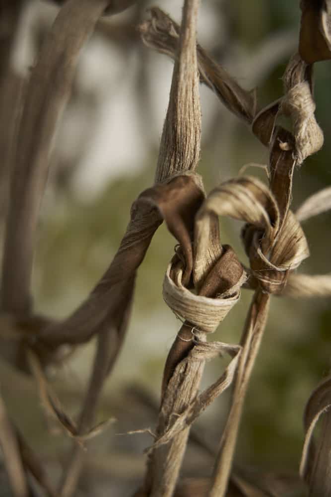 Die Faserstränge lassen sich im eingeweichten Zustand wunderbar verknoten. Somit lassen sich daraus netzartige Gebilde erstellen. Sie strahlen nicht nur Natürlichkeit aus, je nach Form und Größe sind sie auch attraktive Raumgestalter, die ins Auge fallen.