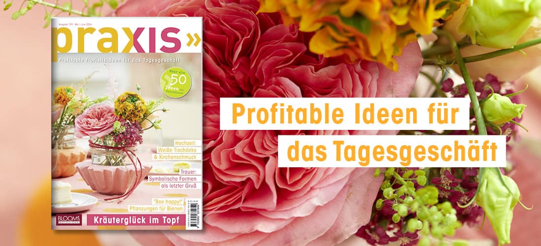 Einmal die Woche gießen, dürfte bei Cymbidien und Anthurien reichen. Sie sind recht genügsam, was ihren Wasseranspruch angeht. Unsere Beispiele zeigen interessante Aufmachungen in Form der holzigen Accessoires wie trockene und verholzte Palmenbraktee bei der Cymbidie sowie Plantanenrindenstücke bei der Anthurie.