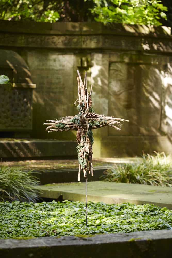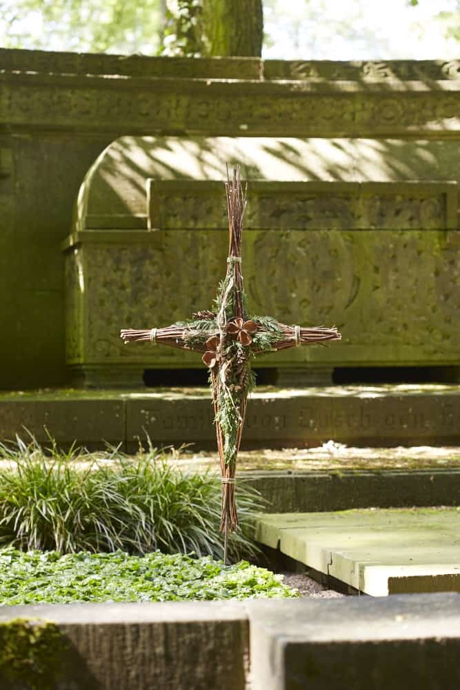 Gedenkkreuz mit Zweigen