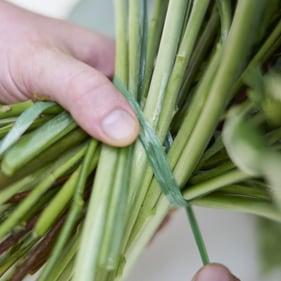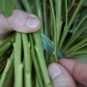 Step 2: Nun kann man, ohne den gesamten Griffbereich fassen und die Stiele allesamt an ihrer Stelle halten zu müssen, weitere Werkstoffstiel anlegen. Nur diese müssen tatsächlich umfasst werden. Auch dabei beachtet man die Stielführung entsprechend der bereits bestehenden Stielespirale.