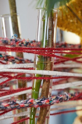 Band, Schnur, Kordel, Glasröhrchen, Obstkiste