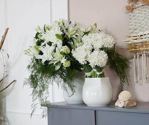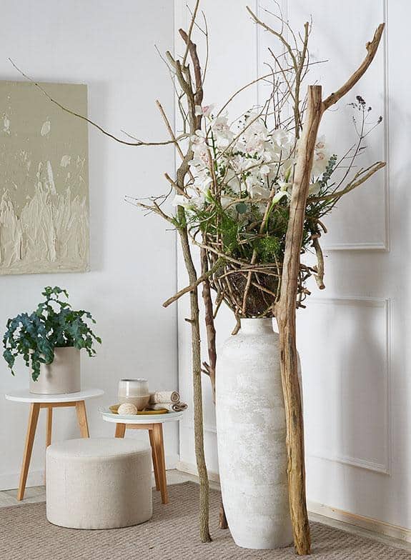 Ein Eyecatcher mit lange haltbaren Cymbidien und Calla spricht eure Geschäftskunden an. Opulent wirkende Gerüste aus Zweigen können immer wieder neu in Szene gesetzt werden. Die Schnittblumen von Decorum sind schlicht und in Fülle arrangiert und unterstützen die klare, feine Optik vom Trendthema.