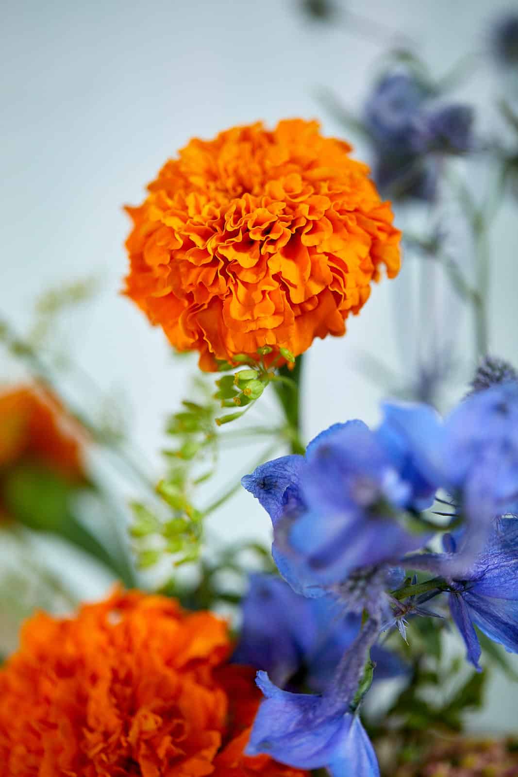 Achillea millefolium, Anethum graveolens var. Hortorum, Clematis Cultivar, Delphinium Cultivar, Eryngium planum ‘Blauer Zwerg’, Tagetes tenuifolia