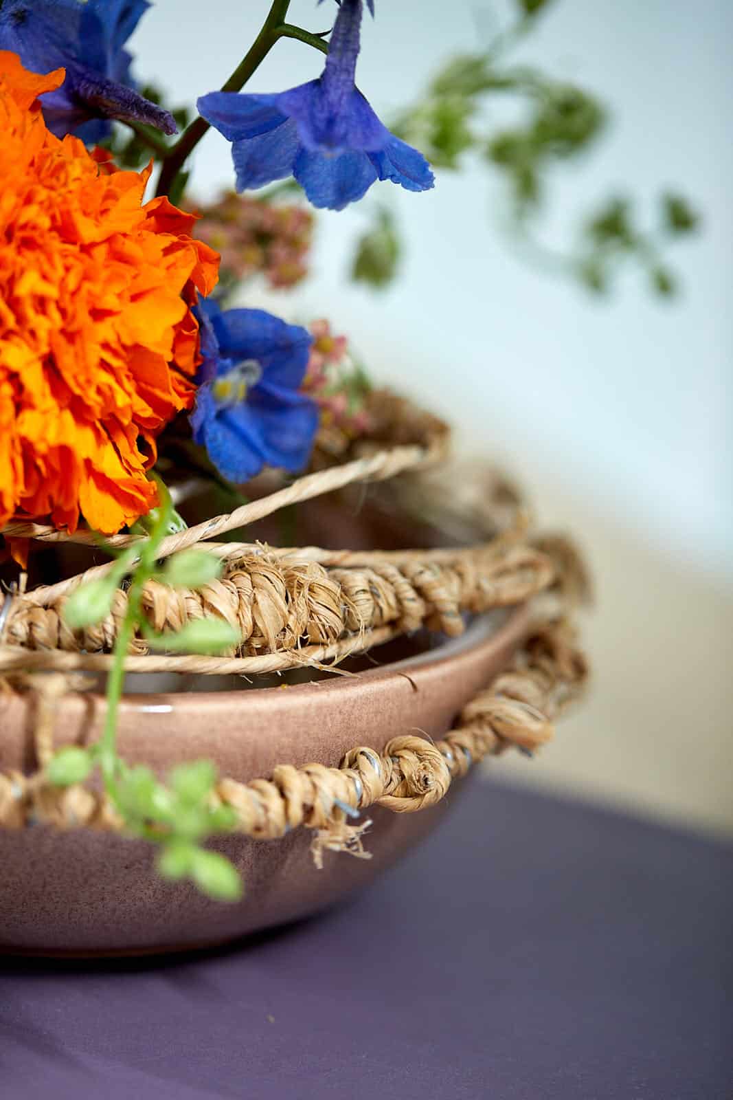 Der Rebendraht mit Drahtseele und Naturbast umwickeltem Mantel bietet viele Möglichkeiten einer naturnahen Gestaltung. Diese wirkt leicht und passt gut zu dem sommerlichen Blütenflor. Beides ist eine trendgerechte Umsetzung des BLOOM’s Trends „vitalized progress“, der sommerliche Outdoorgestaltung prägt. Nachfolgend zwei Beispiele, die schnell und mit etwas Fingerspitzengefühl erstellbar sind.