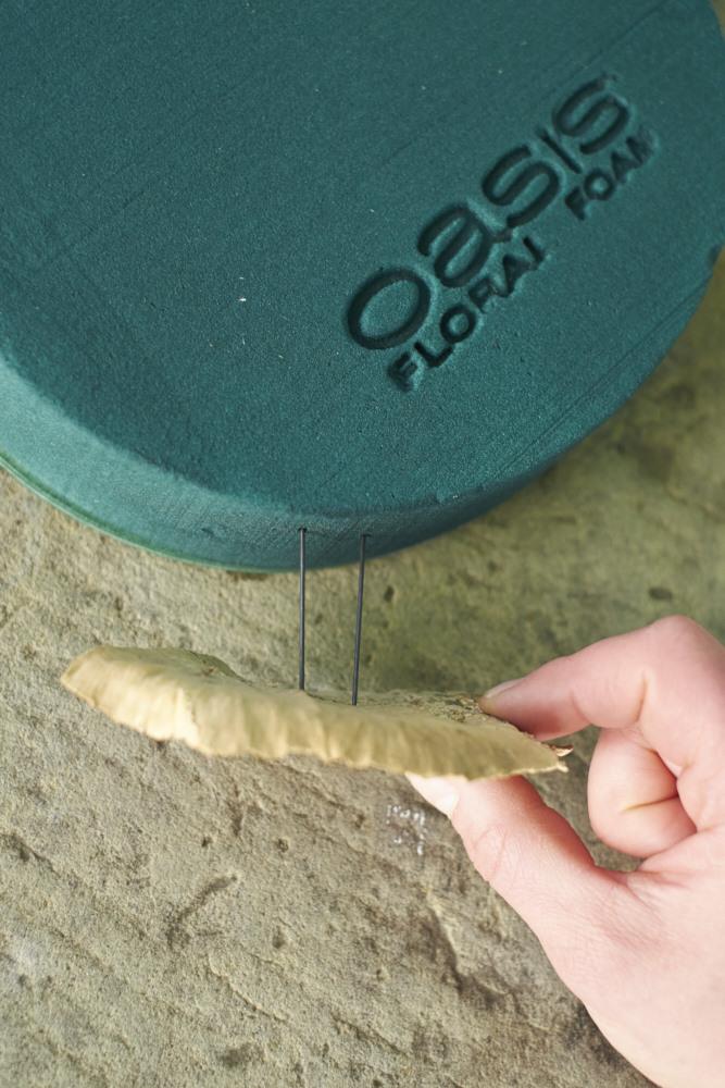 - Beim Einstecken der Zapfen wird gleichzeitig Moos aufgehaftet, das die Steckbasis verdeckt.