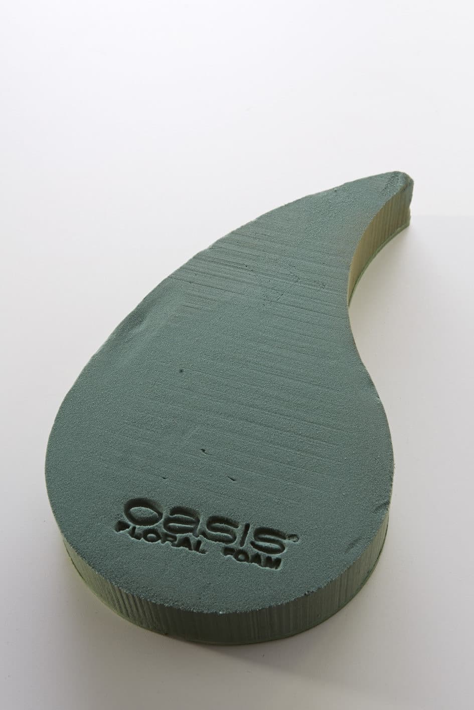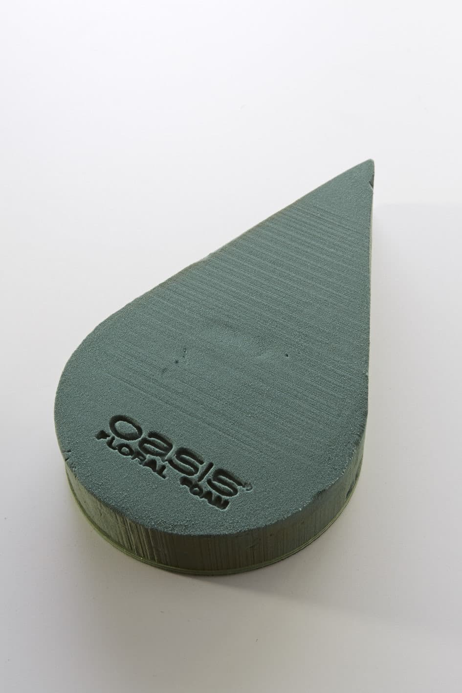 Handelsübliche Frischblumensteckschaum-Tropfen symmetrisch und asymmetrisch mit Holzunterlage der Firma Smithers-Oasis.