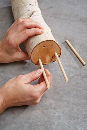 Christrose – Helleborus niger, Weidenzweige geweißt – Salix caprea, Heide – Calluna vulgaris, Waldrebe – Clematis vitalba, Drahtpflanze – Leucophyta brownii, Wacholder – Juniperus horizontalis, Syrischer Wacholder – Juniperus drupacea, Erlenzapfen – Alnus glutinosa, Weißfichtenzapfen an Kunststiel, trockenes geweißtes Gras, Wasserröhrchen, Sisalband, Farbspray, Heißkleber, Steckdraht, Wickeldraht, Holzbohrer