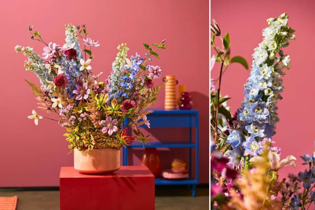 Weidenruten bilden das spielerische Gerüst für farbstarke Blütenkompositionen. Sortenweise arrangiert, entfalten Astilbe, Gloriosa und Co. einen lebendigen Rhythmus, der Struktur und Leichtigkeit harmonisch verbindet. Mit den...