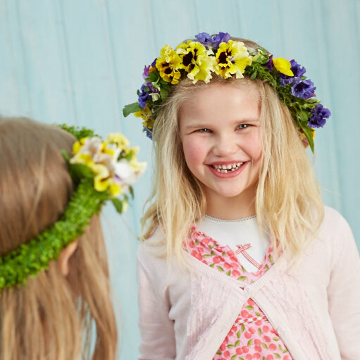 Traditionell werden dafür Dekorationen aus Naturmaterialien wie Zweigen und Blumen erstellt, die mit bunten Girlanden und Wimpeln abgerundet werden. Und auch eine Midsommerstange, geschmückt mit Birkenzweigen und Blumen darf natürlich nicht fehlen. Auch wenn diese den bei uns bekannten Maibäumen ähnlichsieht und die Bezeichnung „majstång“ auch ähnlich klingt, hat sie nichts mit dem Monat Mai zu tun. Viel mehr geht die Bezeichnung auf das schwedische Wort „maja“ zurück, was „mit Blumen schmücken“ bedeutet. So kommt auch nicht von ungefähr, dass Blumen bei den Feierlichkeiten eine wichtige Rolle einnehmen. Meist von Frauen im Haar getragen, symbolisieren Blumenkränze Wiedergeburt und Fruchtbarkeit.