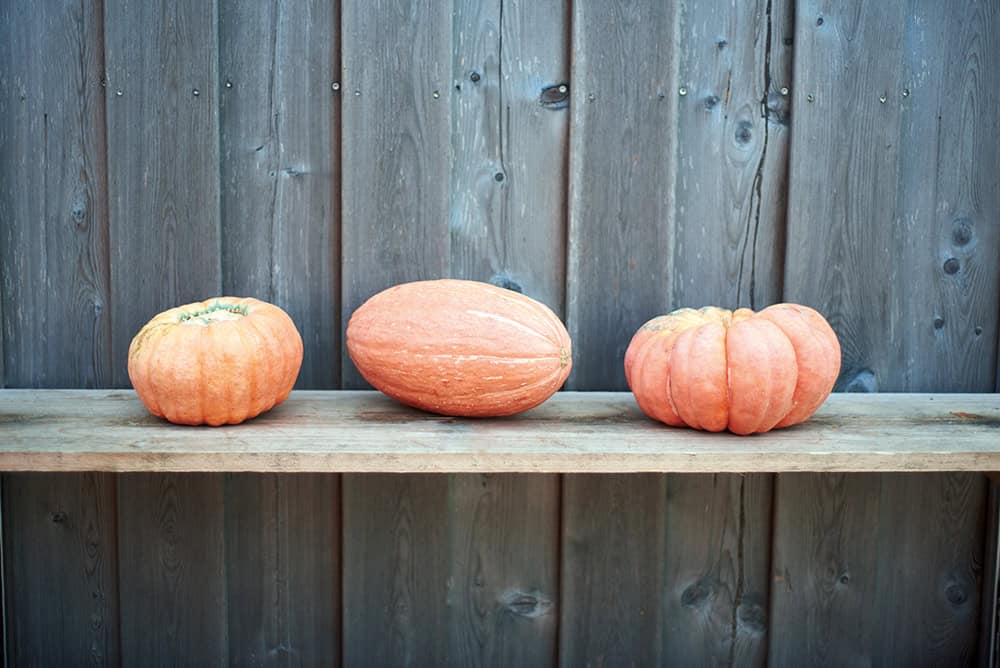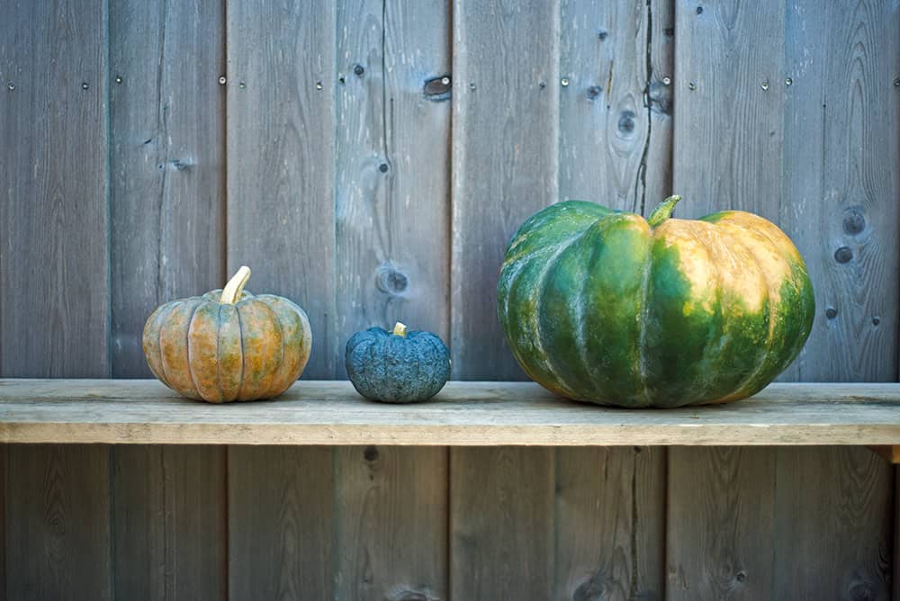 Ein Kürbis kommt selten allein. Neben der allseits bekannten und beliebten Kürbissorte ‘Hokkaido‘ gibt es schätzungsweise mehr als 800 Sorten der Riesenbeere. Allerdings sind nur rund 200 davon essbar. Besonders erstaunlich sind die schier endlosen Variationen in Form und Farbe. Von rund, oval bis zu birnen- oder zwiebelförmig, glatt oder mit kleinen Pickeln, in weiß, gelb, grün, schwarz, gefleckt oder gestreift ist alles dabei.