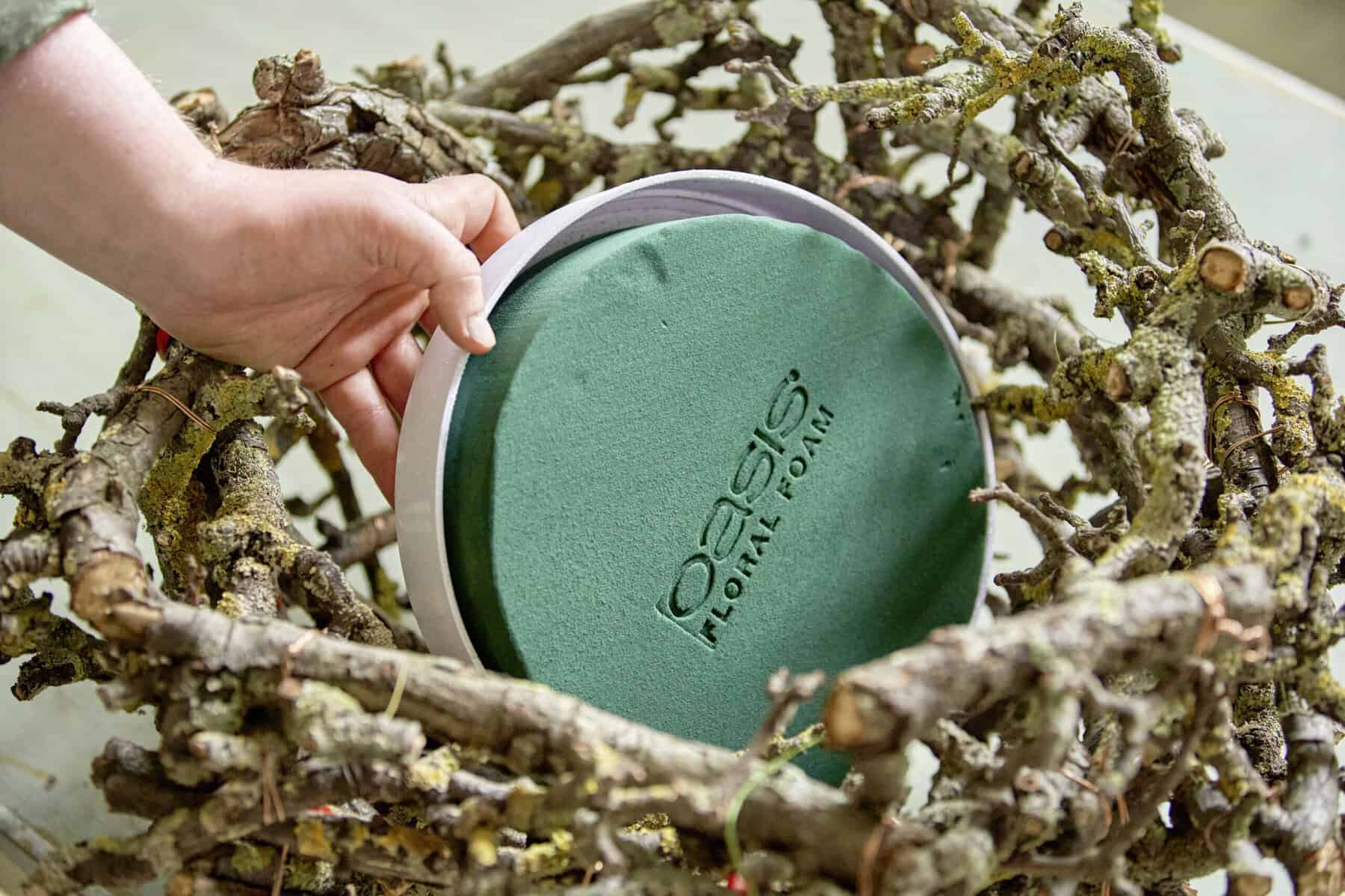 - Frischblumensteckschaum-Kranz mit Kunststoff-Unterlage
