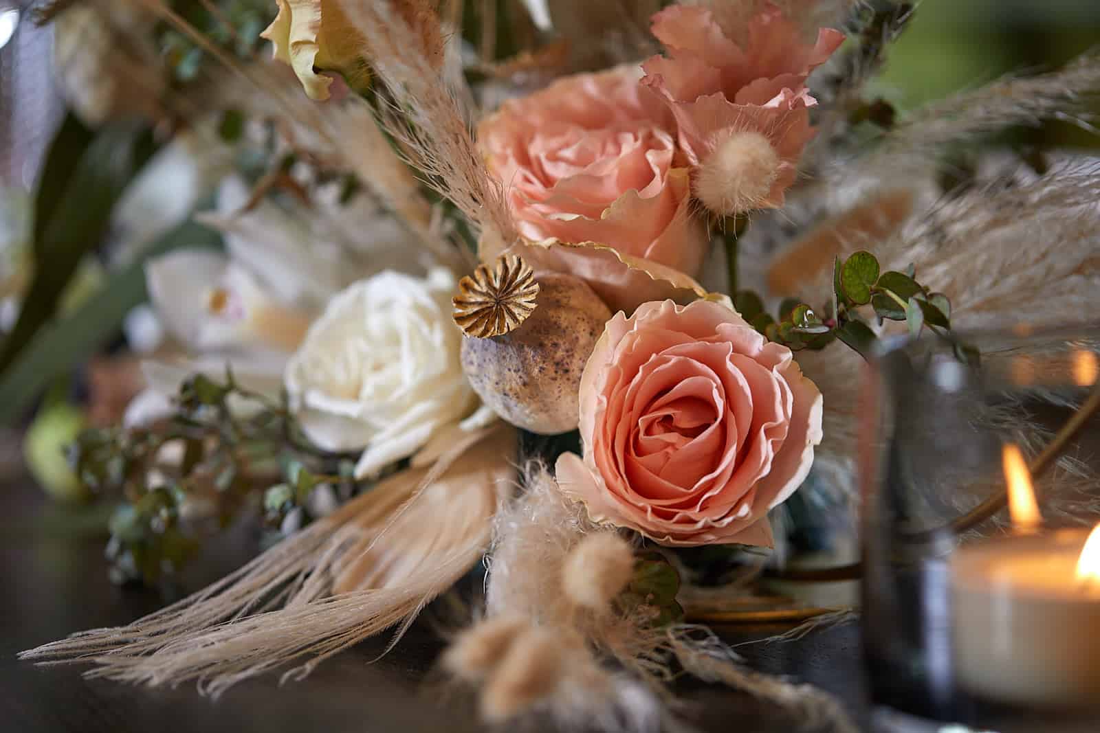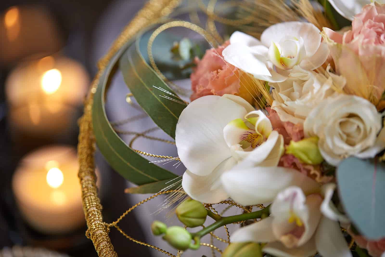 Diese Kreationen vereinen frische und getrocknete Floralien, kombiniert mit goldenen Akzenten für das glamouröse Flair. Zarte Federn sorgen für einen Hauch Nostalgie. So entstehen Arrangements, die den unverkennbaren Charme der 20er-Jahre auf einzigartige Weise einfangen.