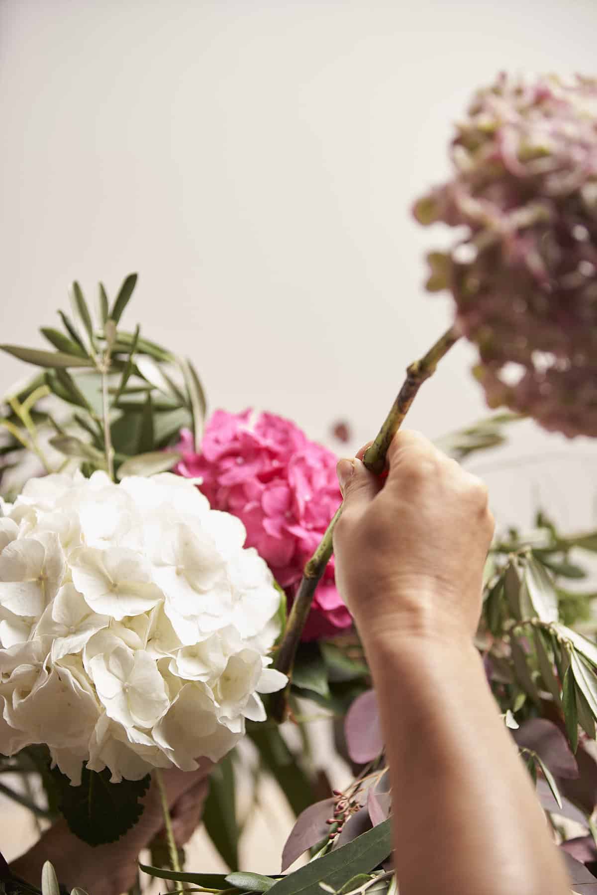 Schnitthortensien der Initiative Hydrangeaworld sind in einer umfangreichen Farbpalette und verschiedenen Formen erhältlich. Damit lassen sich Blumensträuße kreieren und ganz unterschiedliche Stilrichtungen realisieren – von luxuriös bis natürlich ist alles möglich. Mit nur wenigen Stielen können Sie eine außergewöhnliche Wirkung erzielen!