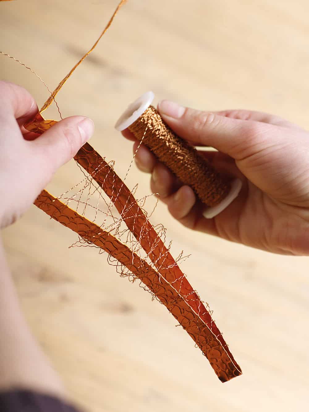 Schritt 1: Die großen Sterne aus Flachdraht in Form biegen, mit Zierdraht umspannen und dabei verschiedene Materialien dazwischen stecken.