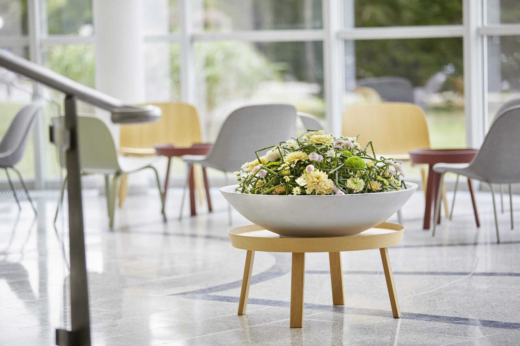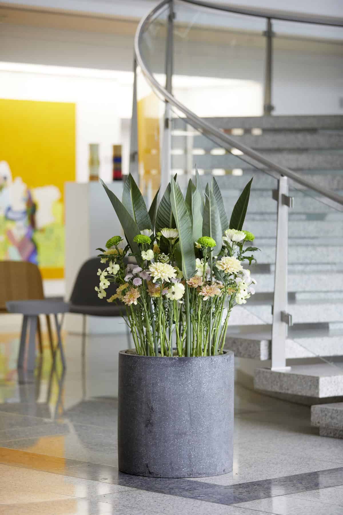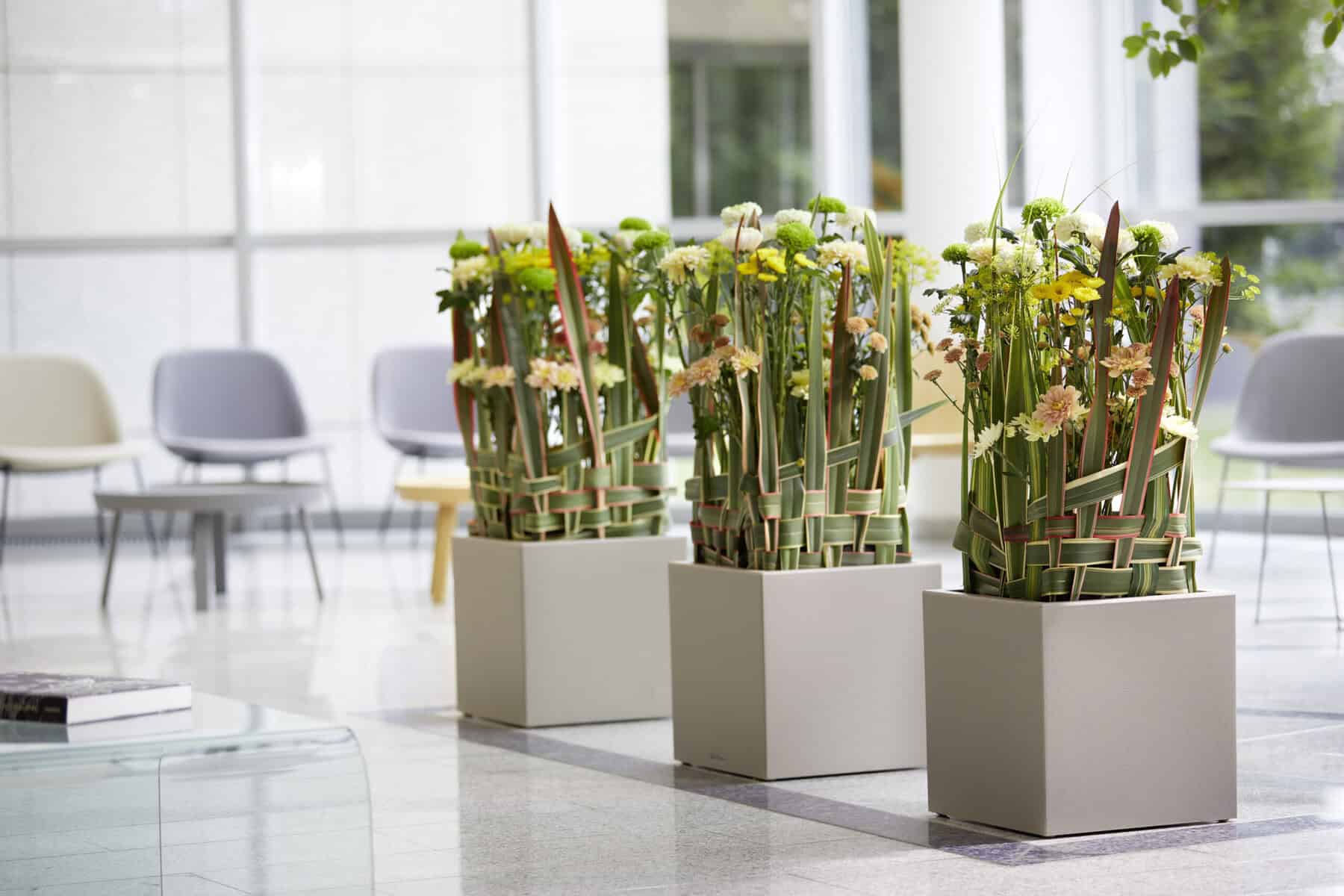 Als Raumschmuck kreieren Blumen eine natürliche Wohlfühlatmosphäre und laden zum Verweilen ein – das gilt insbesondere für das Arbeitsumfeld. Viele Unternehmen setzen daher bereits auf Businessfloristik in Empfangsbereichen und Büroräumen. Besonders dafür geeignet sind die langhaltenden, pflegeleichten Chrysanthemen von JUST CHRYS.