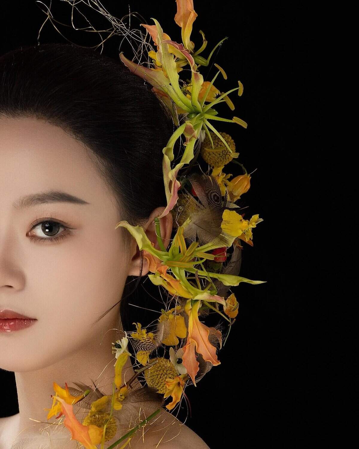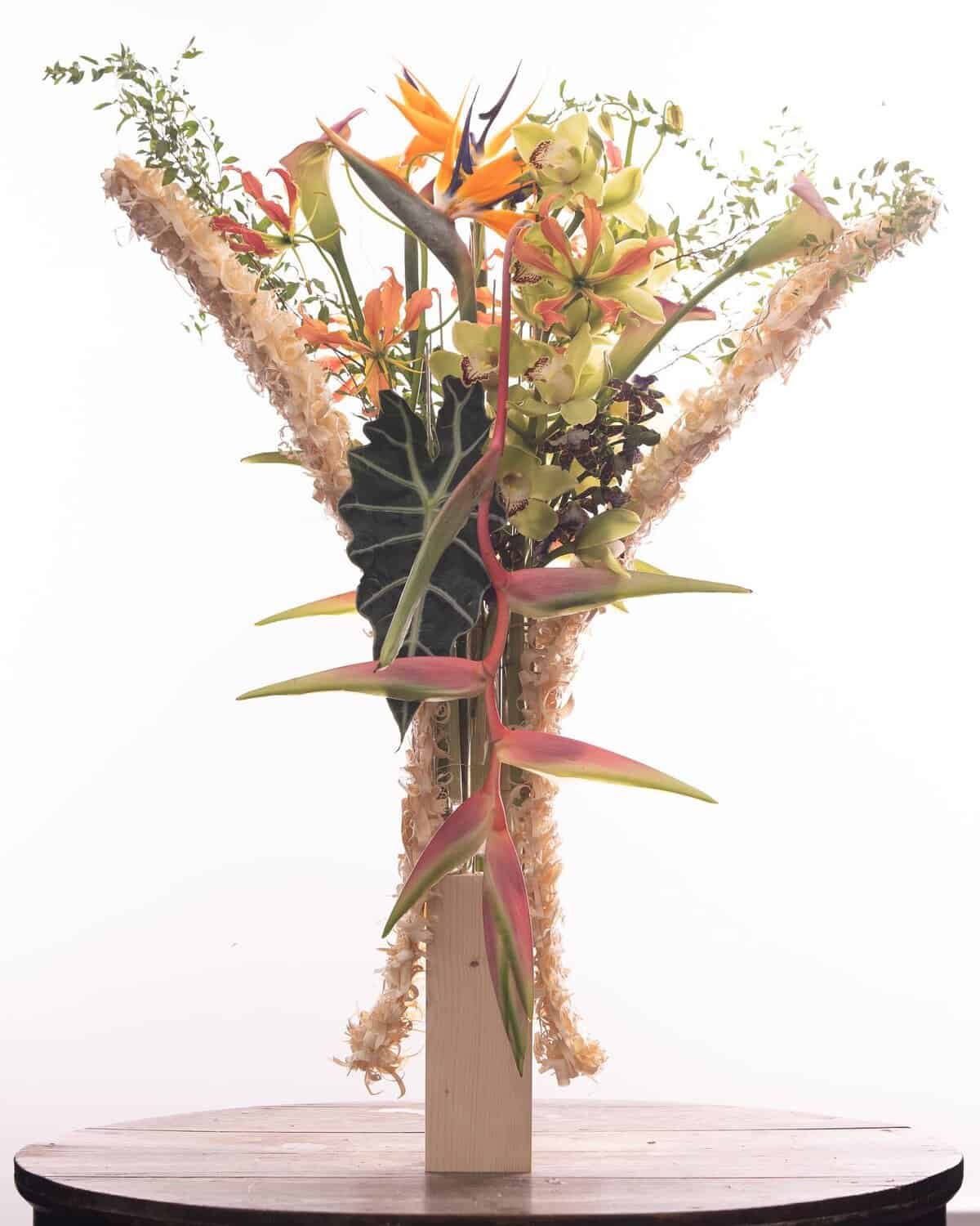 Seine Kreationen sind wie kleine Gedichte aus Blumen, Papier und Holz, inspiriert von der japanischen Ikebana-Tradition, in der jede Linie und jede Leere eine Bedeutung trägt. Hiroto liebt es, mit natürlichen Materialien wie Washi-Papier und Bambus zu spielen und so eine Brücke zu schlagen zwischen alter Kultur und zeitgenössischer Kunst. Für ihn sind seine Arrangements mehr als Dekoration – sie sind eine stille Erzählung von Vergänglichkeit und Schönheit, von Balance und Bewegung.