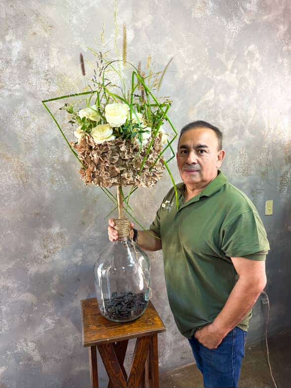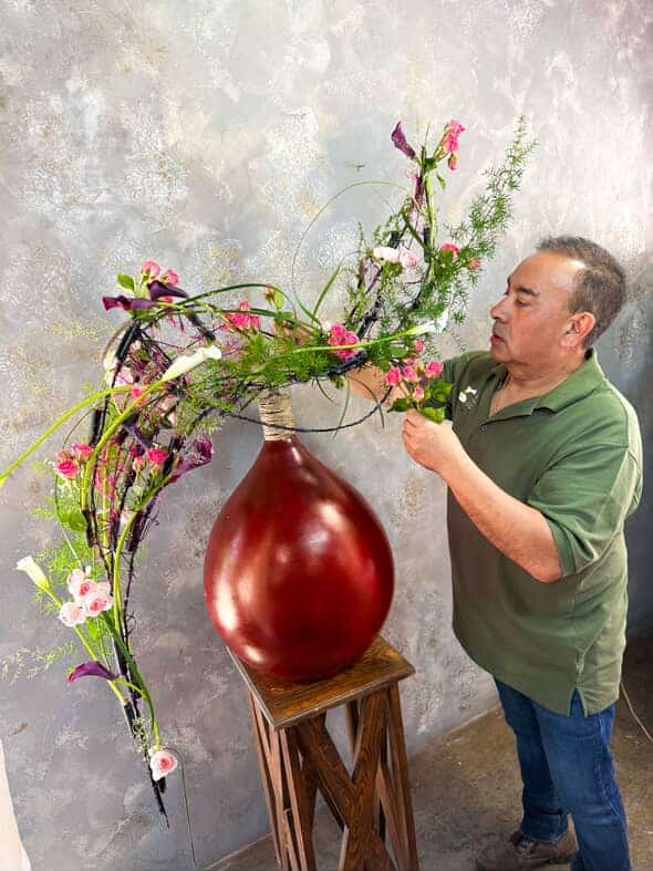 Sein Stil ist geprägt von klarer Linienführung, die sich mit der warmen Farbpalette Lateinamerikas verbindet. Dabei entstehen Werke, die zugleich ruhig und lebendig wirken. Wie Oscar sagt: „Ich mag es, wenn meine Arrangements nicht zu überladen sind, sondern Raum zum Atmen lassen.“ Diese Harmonie zieht sich durch all seine floralen Kompositionen.